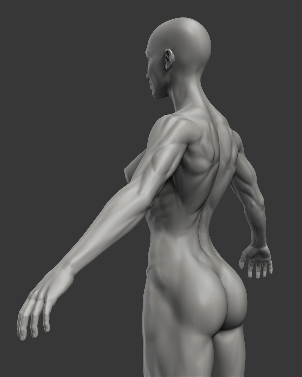 It is an anatomical base model female. I created it using photo references. This model bases on a natural bodybuilder physique to keep realistic proportions, but some elements have been deliberately modified to gain specific features of this character. You can use it for your own purposes.